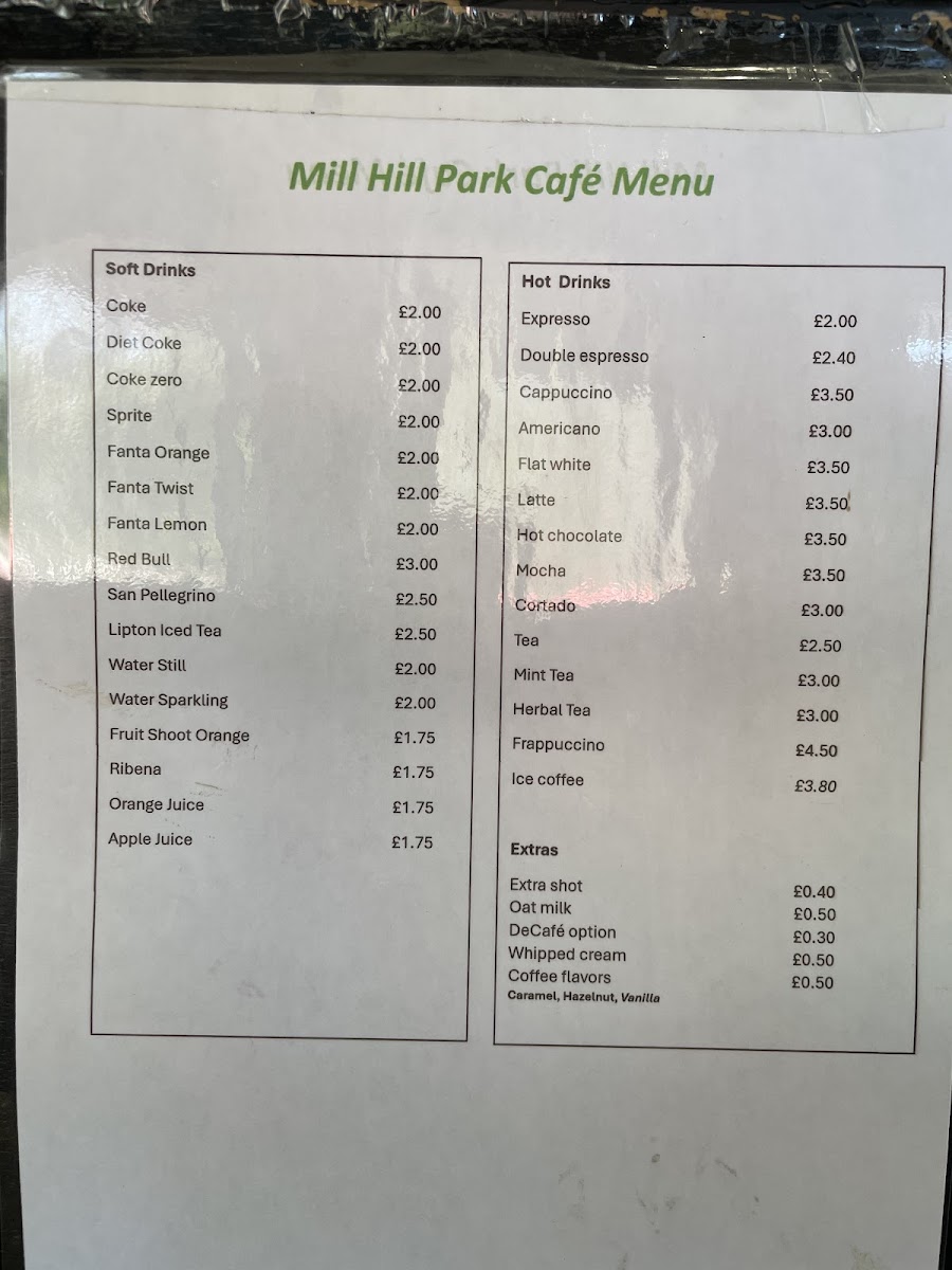 Mill Hill Park Cafe Menu